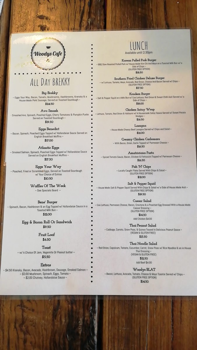 Woodys Cafe Menu